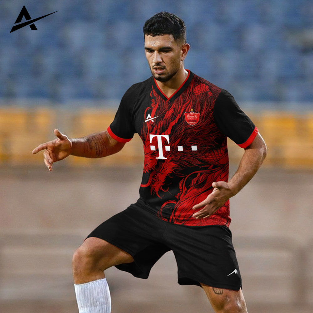 افتخار داریم که کیت کانسپت دراگون پرسپولیس را به شما معرفی کنیم. این کیت منحصر به فرد، نماد قدرت و شجاعت تیم محبوبتان است و طراحی آن به گونهای است که هر هواداری را مجذوب خود میکند.
